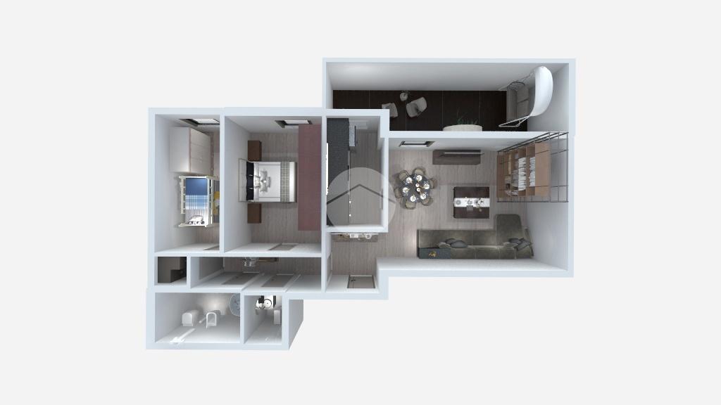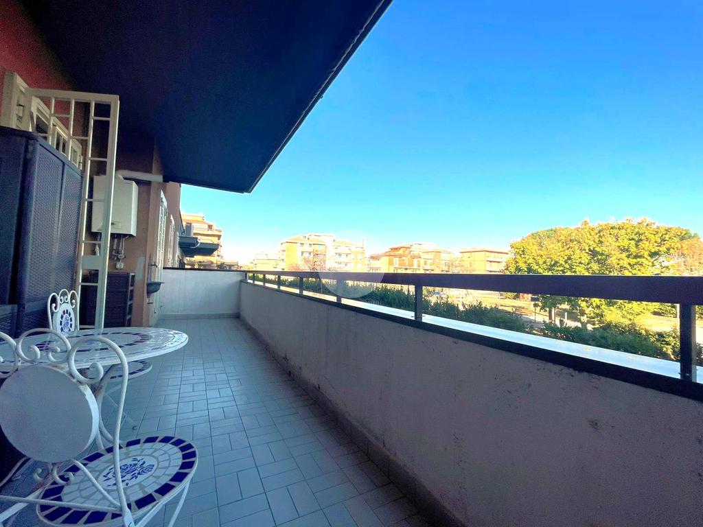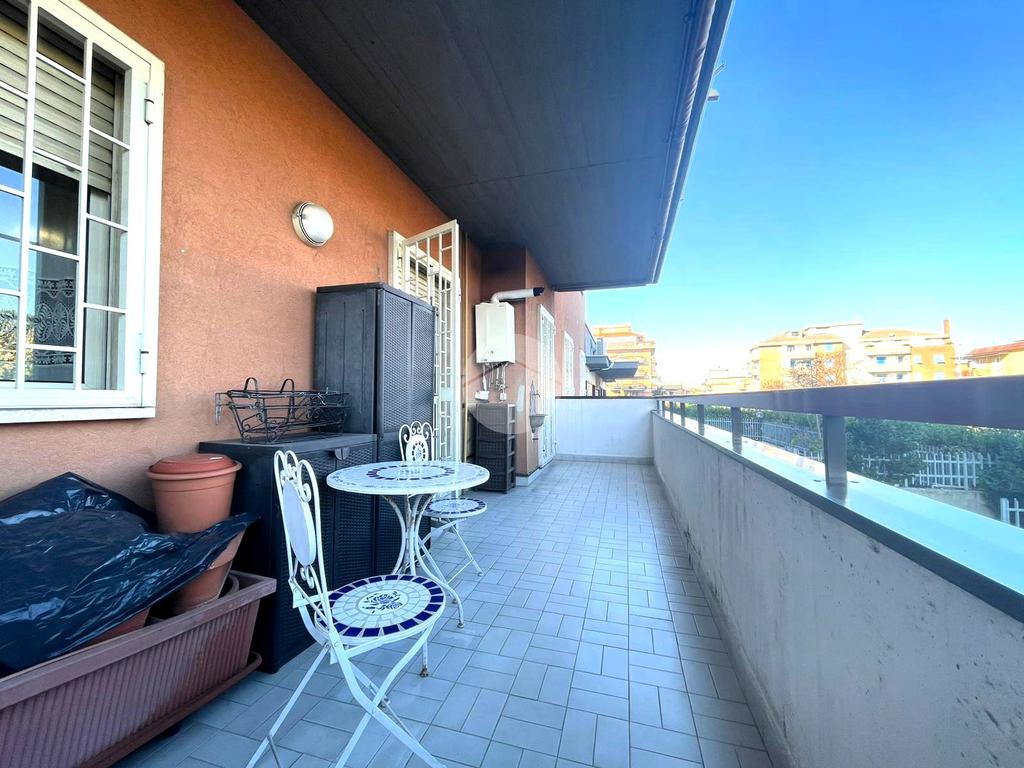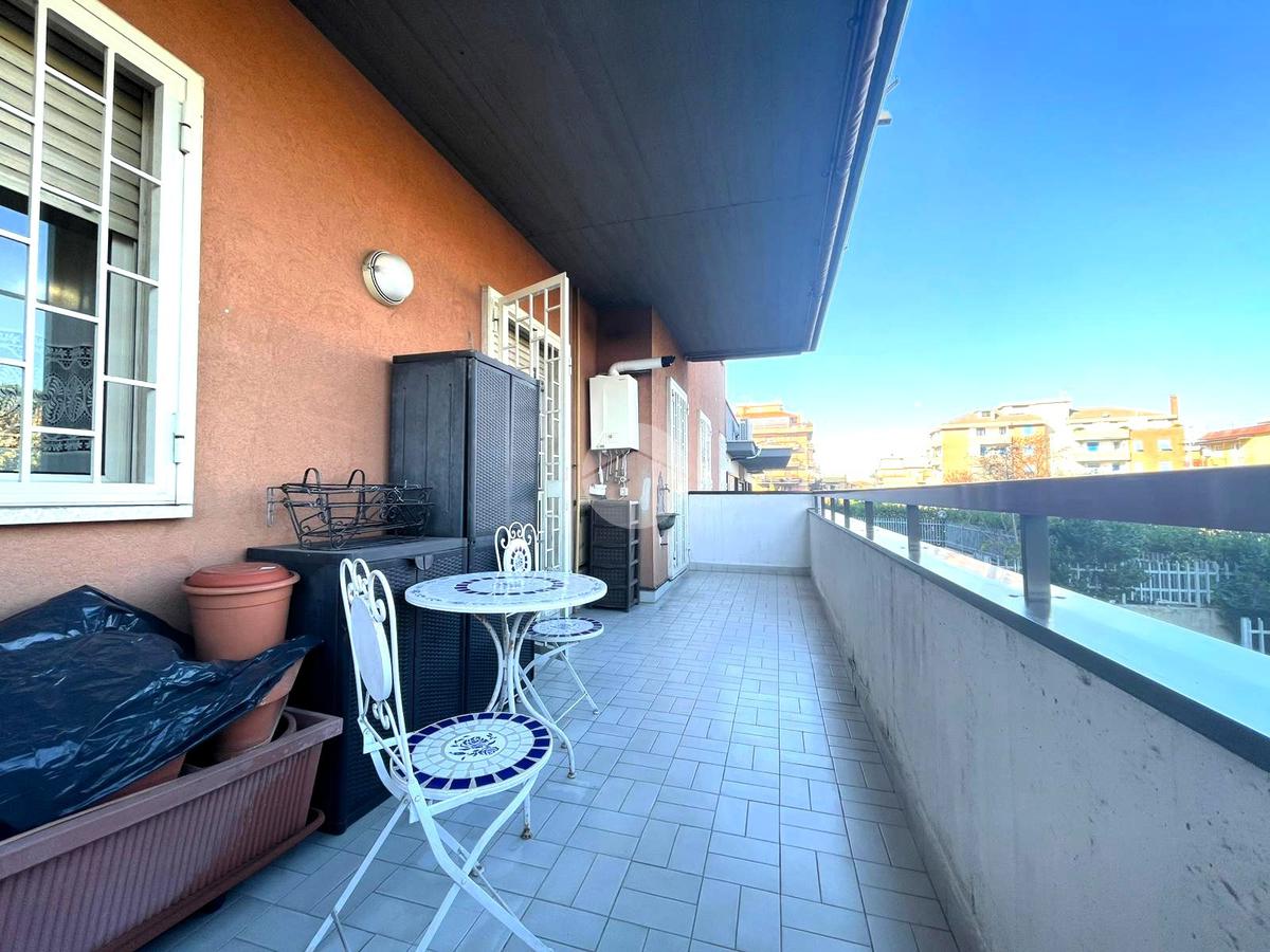 appartamento trilocale posto al piano primo con ascensore, composto da ingresso, salone con cucina abitabile, 2 camere, 2 bagni e ampio balcone tearrazzato con affaccio diretto sul parco di Giardinetti.