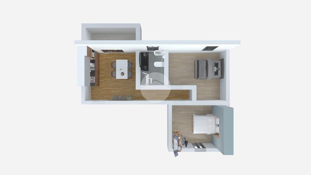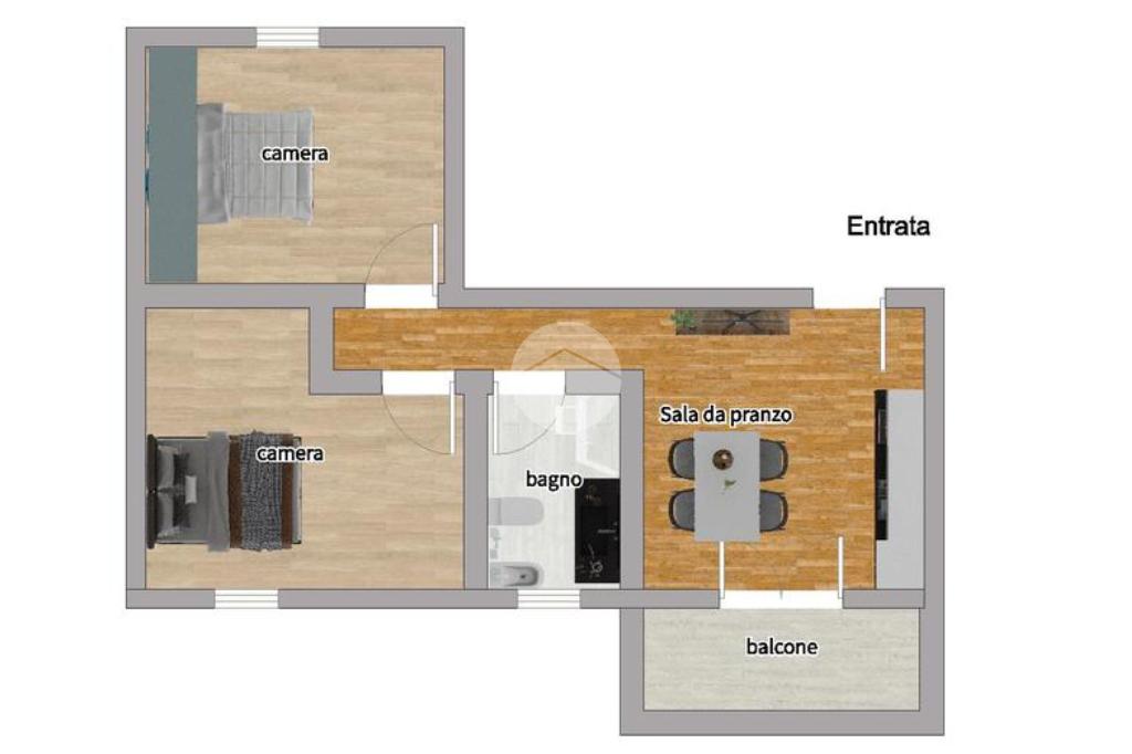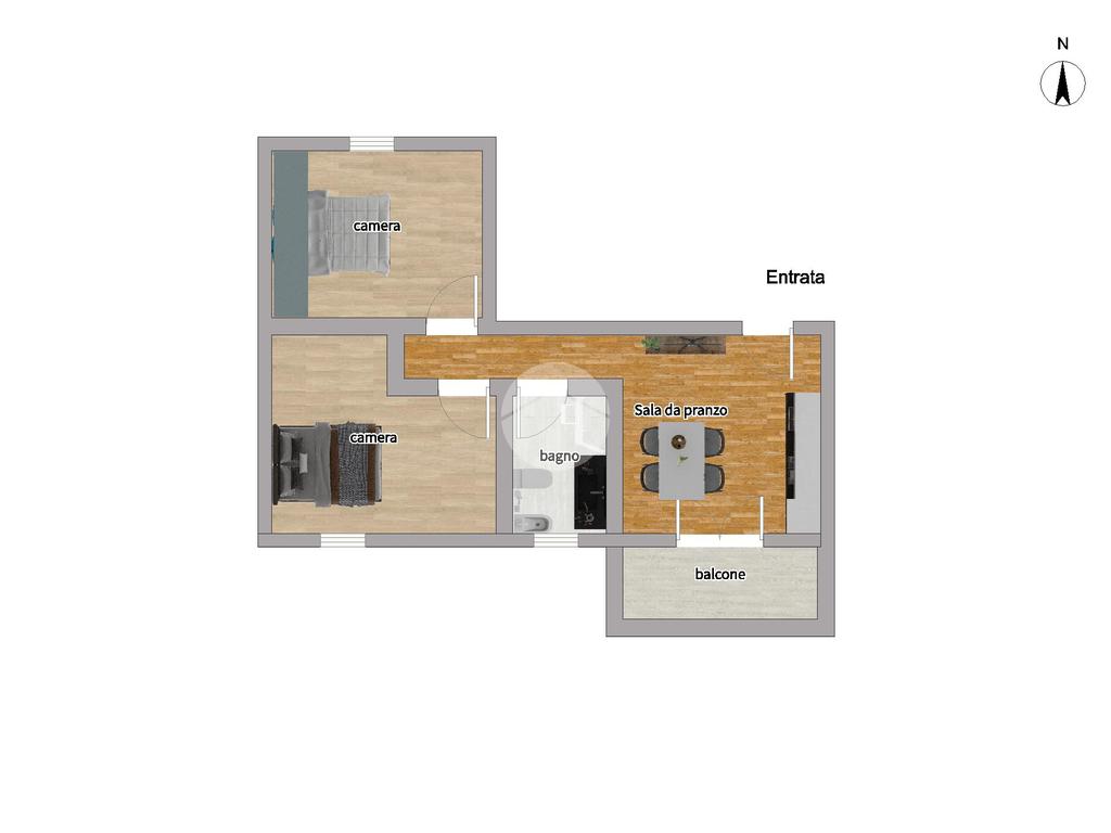 ampio bilocale, composto da cucina abitabile a vista, 2 camere da letto matrimoniali, bagno e balcone.